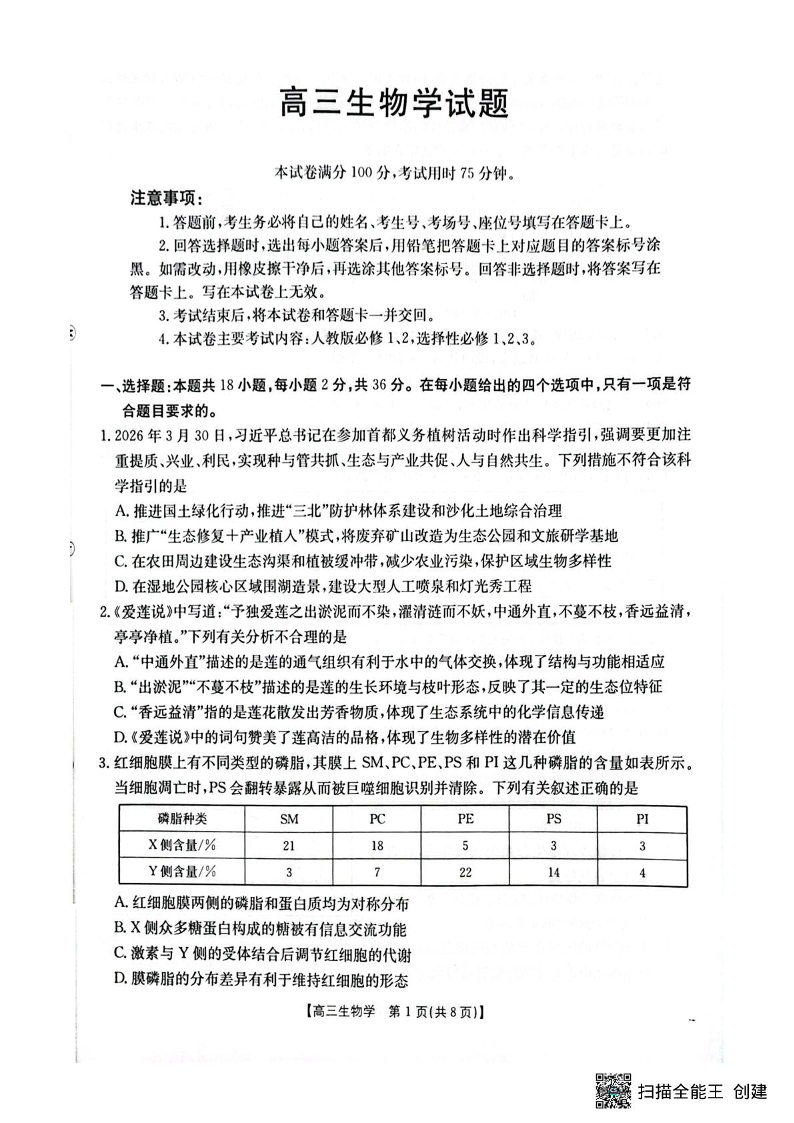 高三生物--湖北省随州市2026届高三下学期4月考前模拟预测