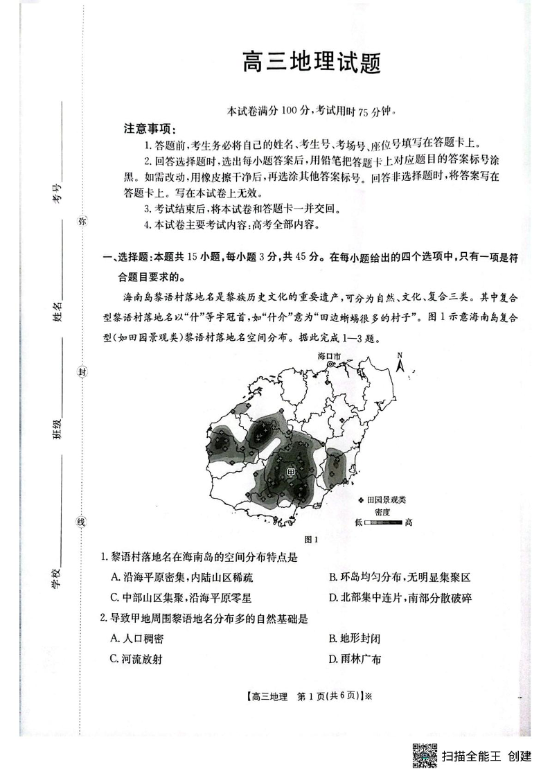 高三地理--湖北省随州市2026届高三下学期4月考前模拟预测