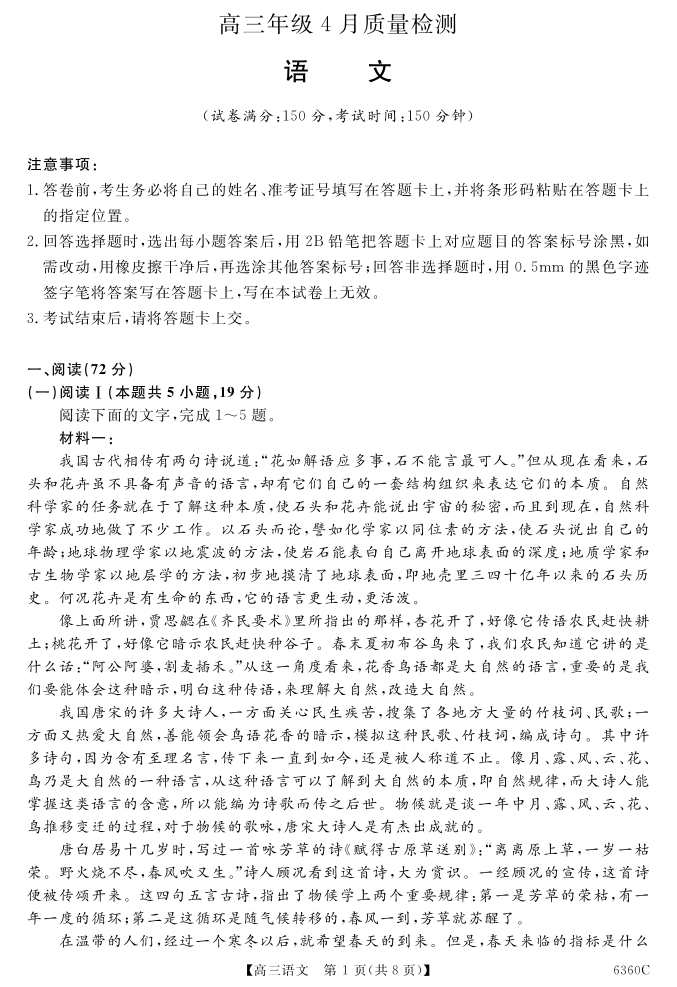 高三语文--湖南省天壹名校联盟2026届高三年级4月质量检测