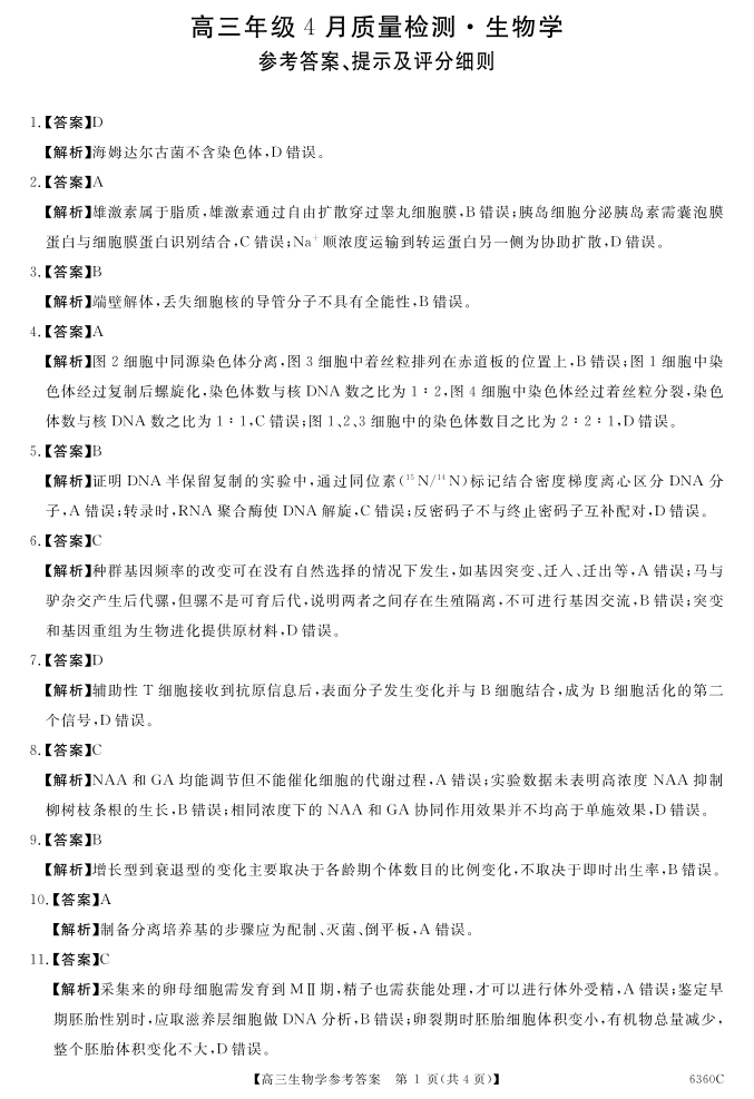 高三生物答案--湖南省天壹名校联盟2026届高三年级4月质量检测