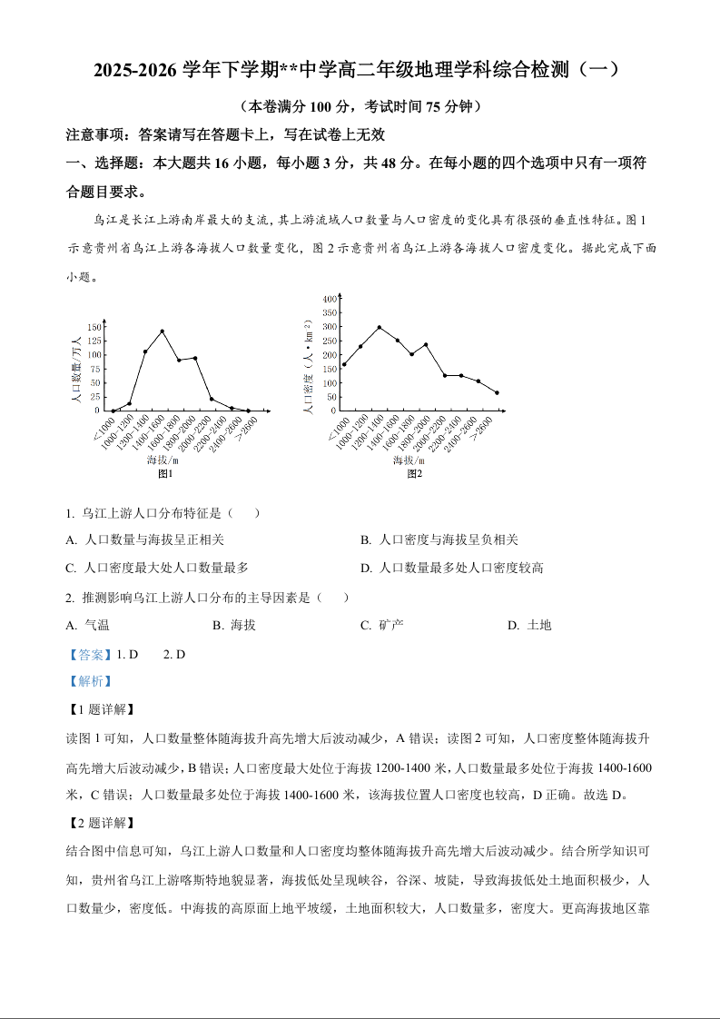 高二地理(解析版)--江西省赣州市四校2025-2026学年高二下学期综合检测联考(一)