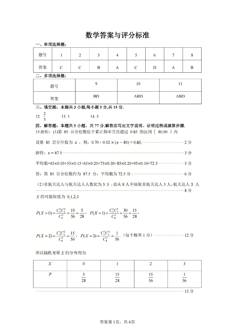 高三数学答案--天域全国名校协作体2026届高三4月联考
