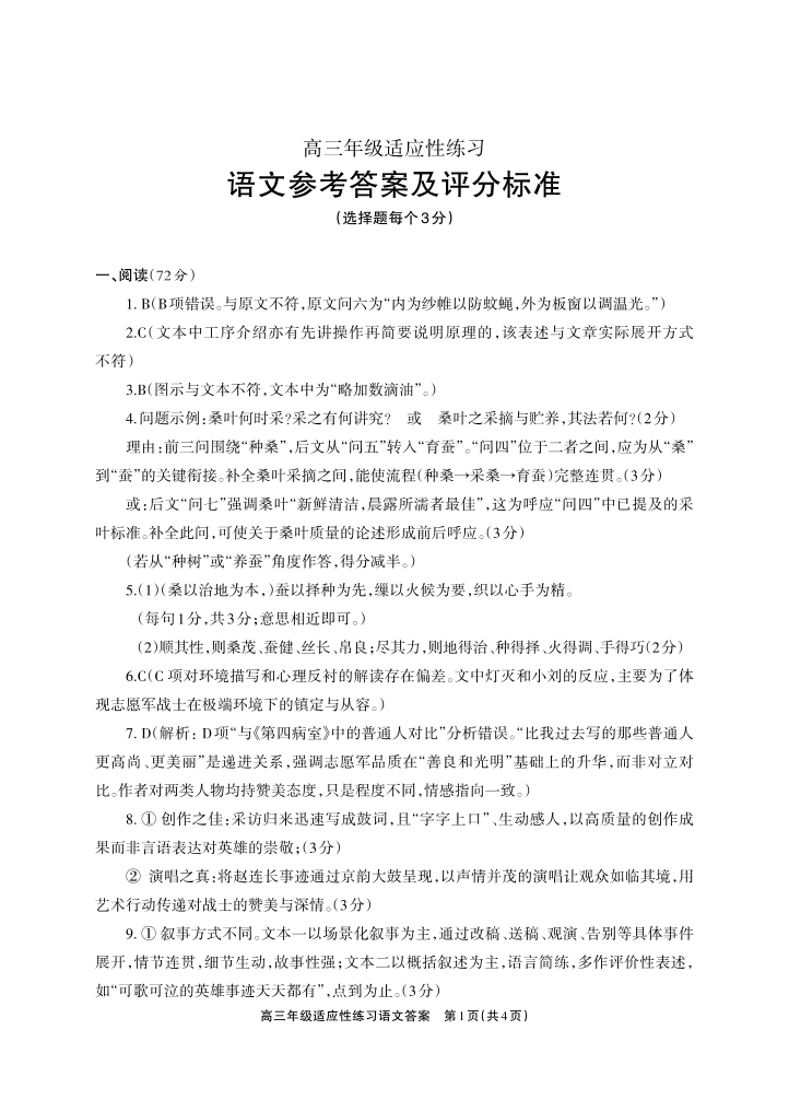 高三语文答案--四川省德阳市2026届高三年级适应性练习(德阳三诊)