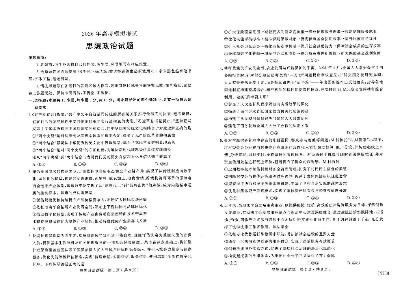 高三政治--山东省济宁市2026.4高三二模统考