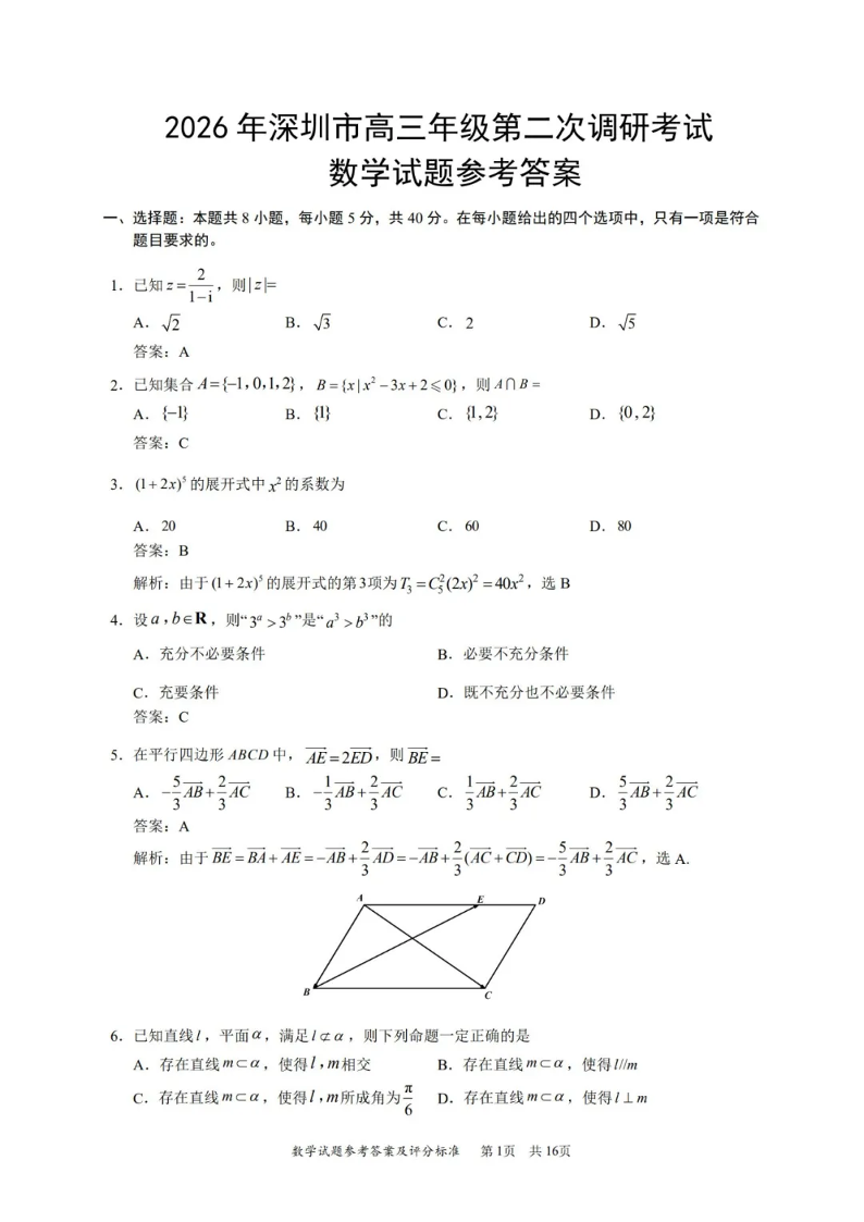 高三数学答案--广东省深圳市2026届高三下学期第二次调研考试