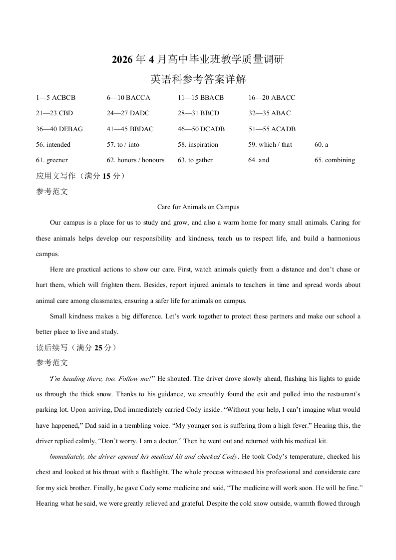 高三英语答案--广西南宁市2026届高三4月高中毕业班教学质量调研