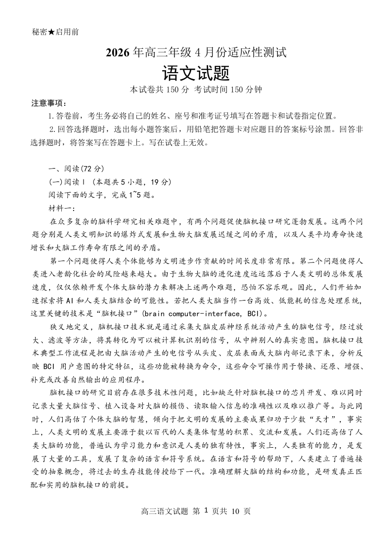 高三语文+答案--山东省东营市2026届高三4月适应性测试(东营二模)
