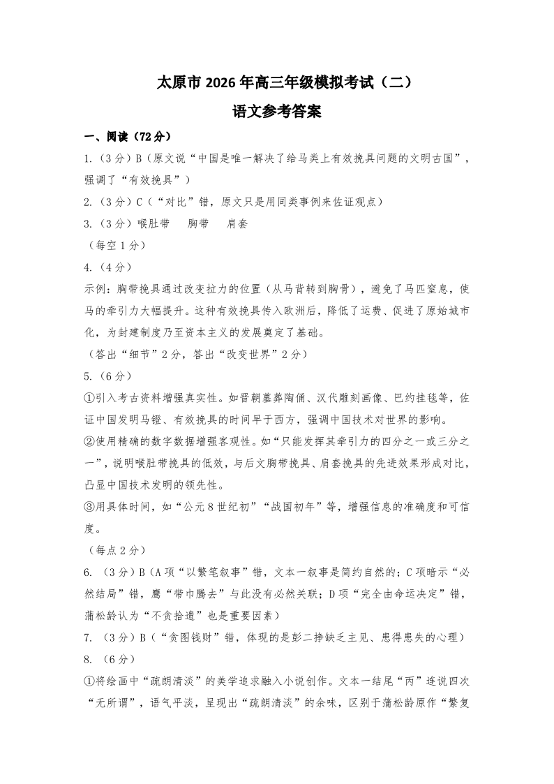高三语文答案--山西省太原市2026届高三模拟考试(二)(太原二模)