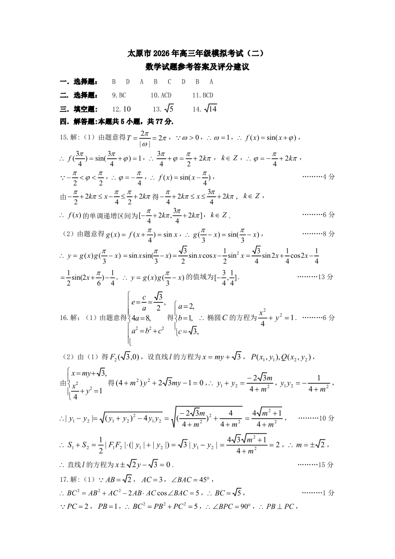 高三数学答案--山西省太原市2026届高三模拟考试(二)(太原二模)