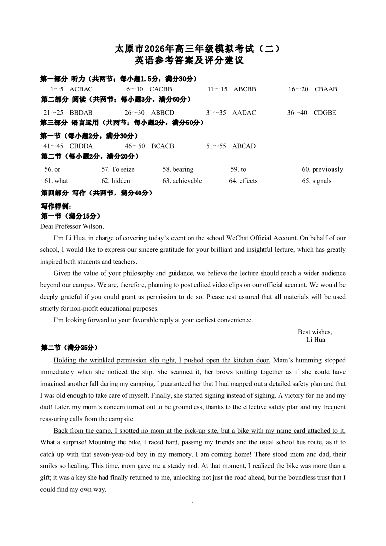 高三英语答案--山西省太原市2026届高三模拟考试(二)(太原二模)