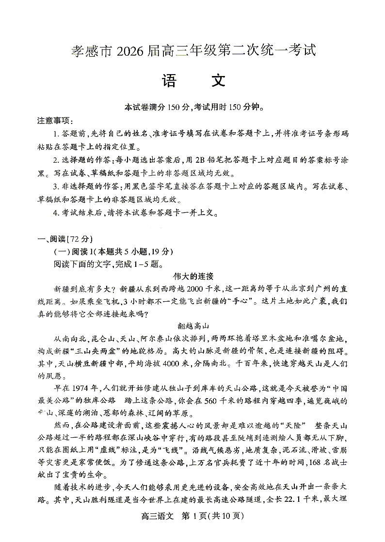 高三语文--湖北省孝感市2026届高三下学期第二次统一考试(孝感二模)
