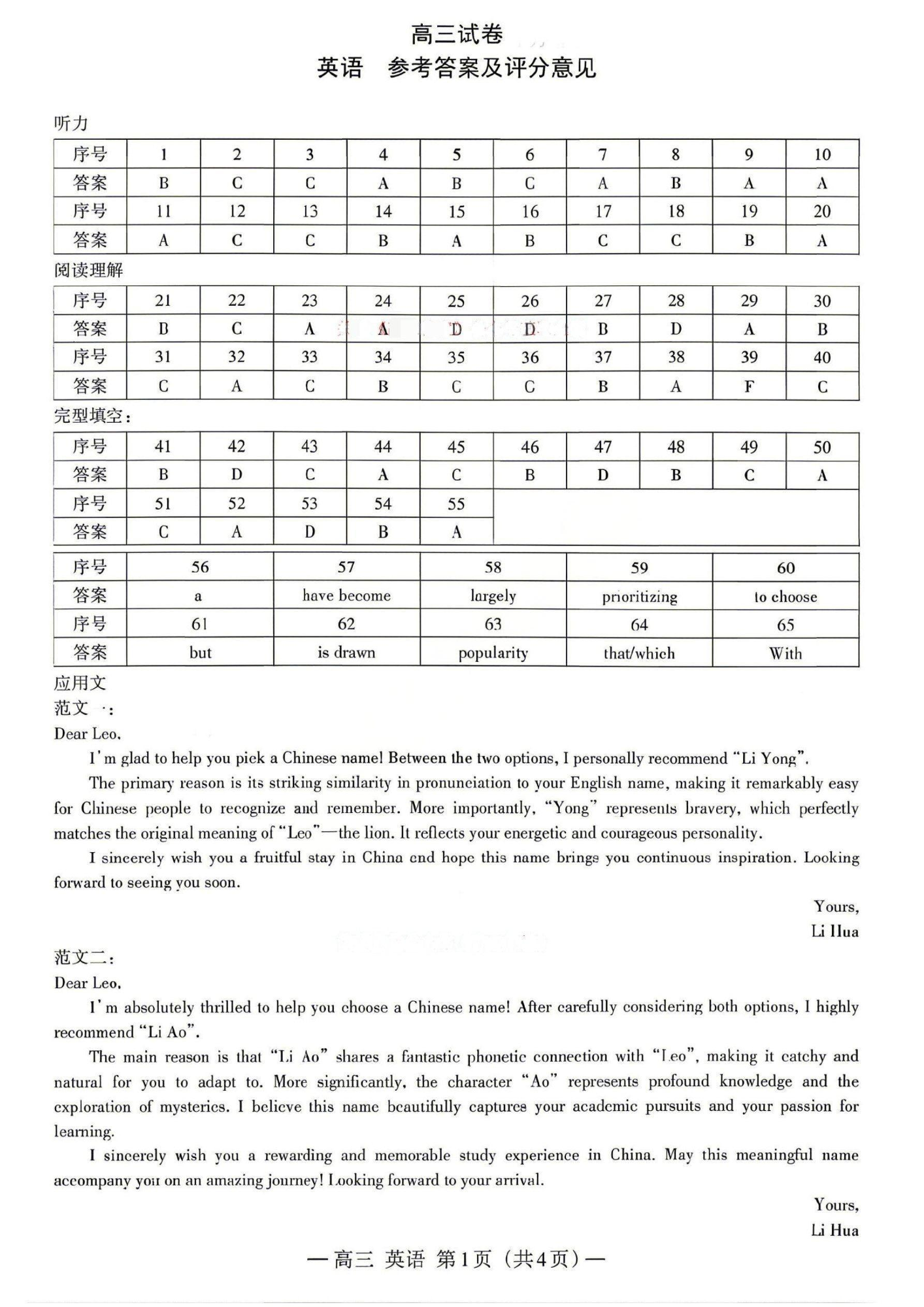 高三英语答案--江西省南昌市2026届高三下学期四月检测(南昌二模)