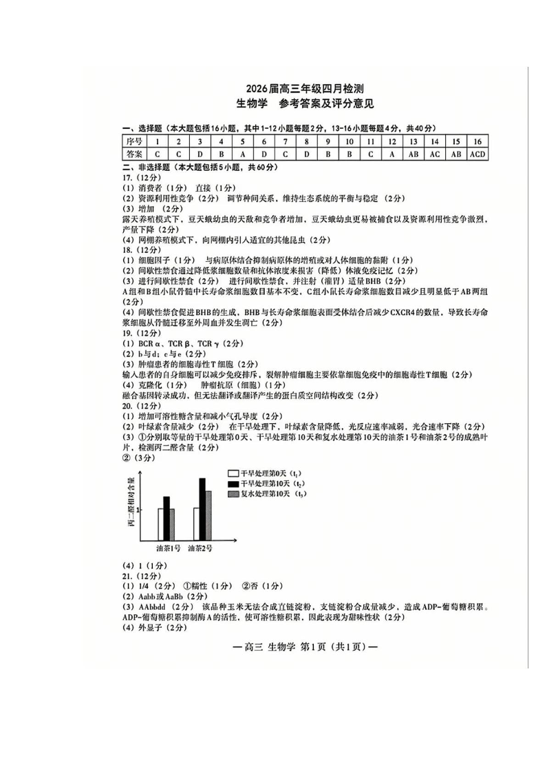高三生物答案--江西省南昌市2026届高三下学期四月检测(南昌二模)