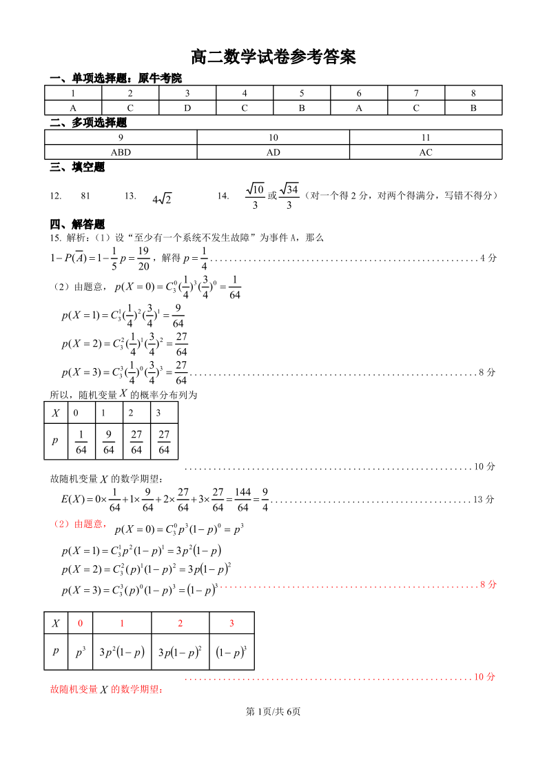 高二数学答案--浙江衢州五校联考2025-2026学年高二下学期期中考