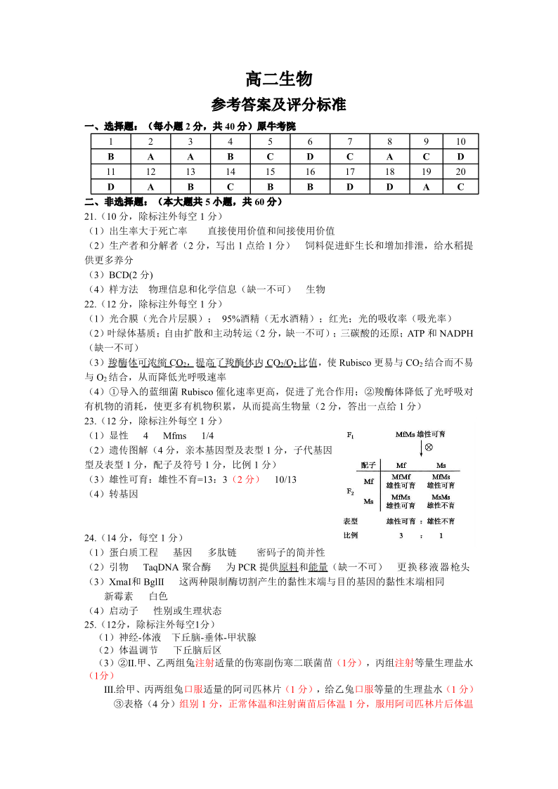 高二生物答案--浙江衢州五校联考2025-2026学年高二下学期期中考