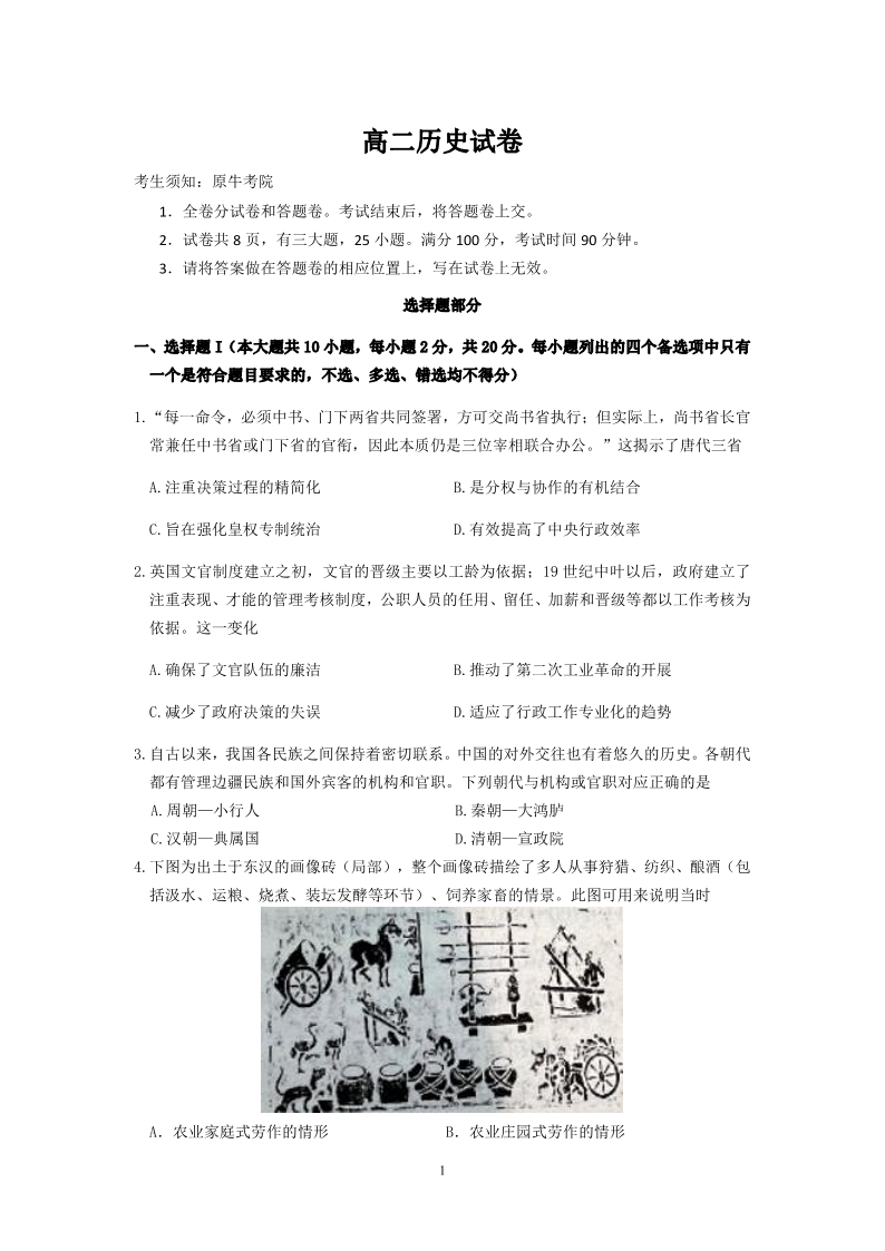 高二历史--浙江衢州五校联考2025-2026学年高二下学期期中考