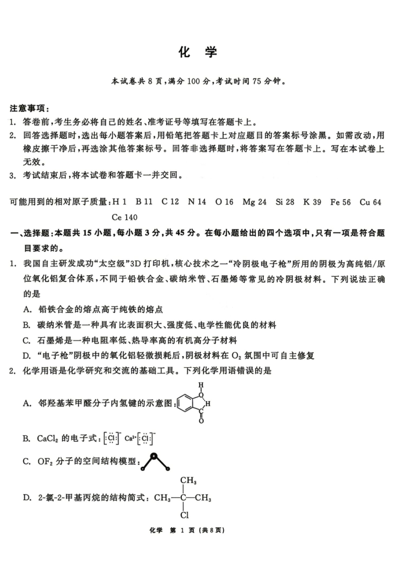 高三化学--黑龙江省齐齐哈尔市2026届高三第二次联考(齐齐哈尔二模)