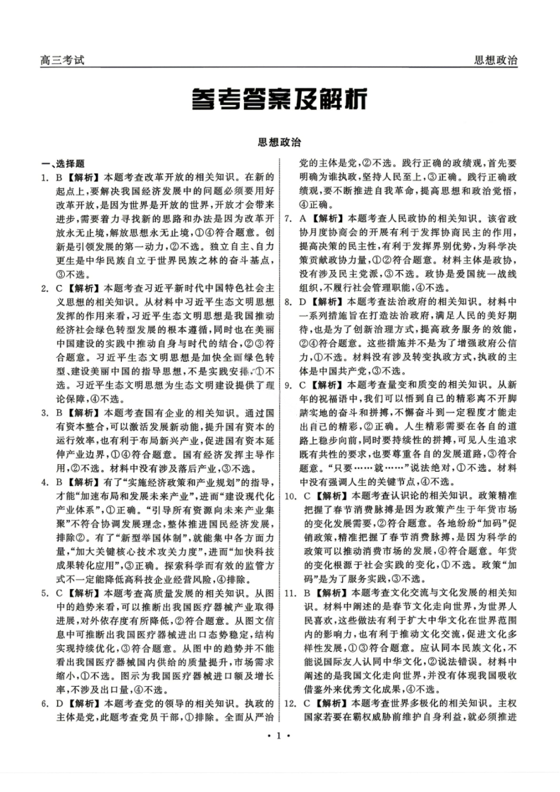 高三政治答案--黑龙江省齐齐哈尔市2026届高三第二次联考(齐齐哈尔二模)