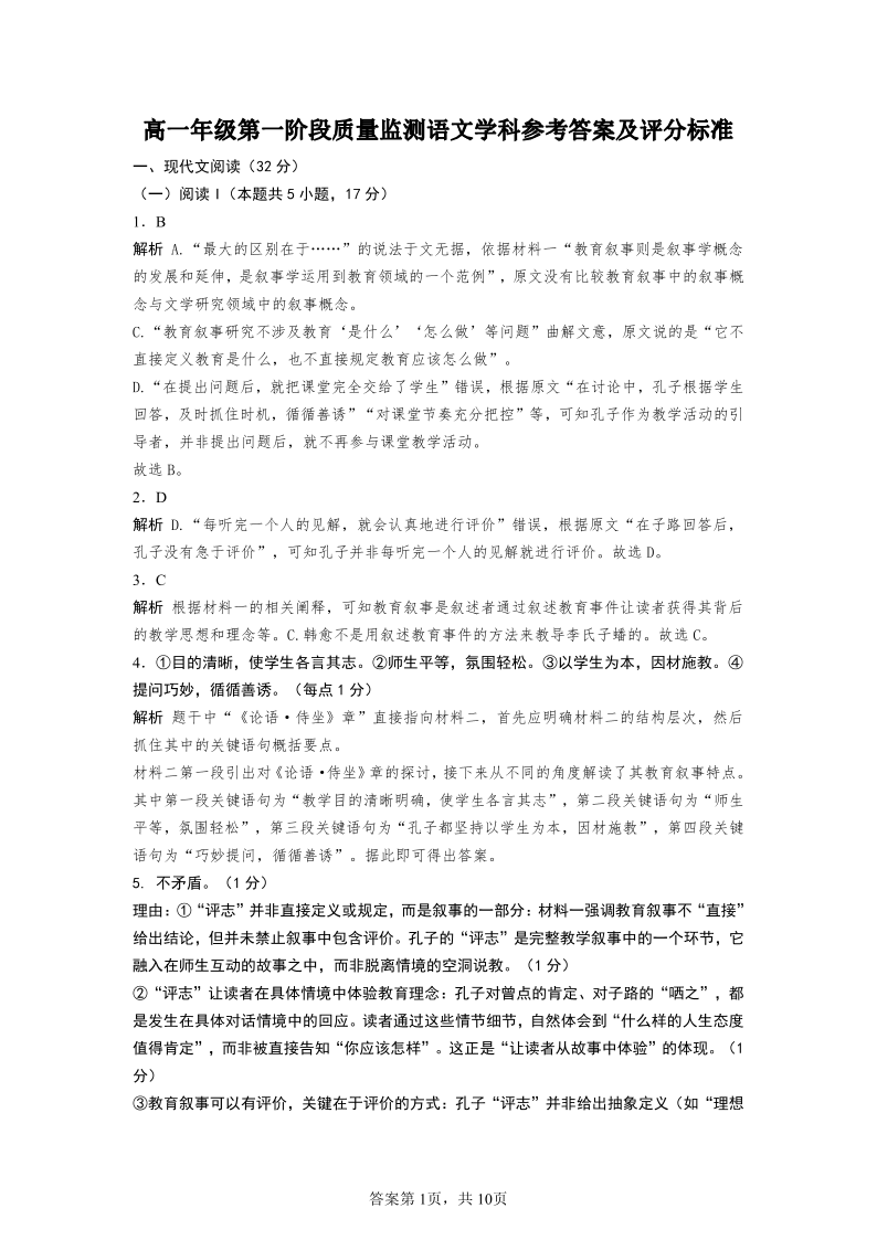 高一语文答案--广东省深圳市聚龙科学中学2025-2026学年高一下学期第一阶段质量监测联考