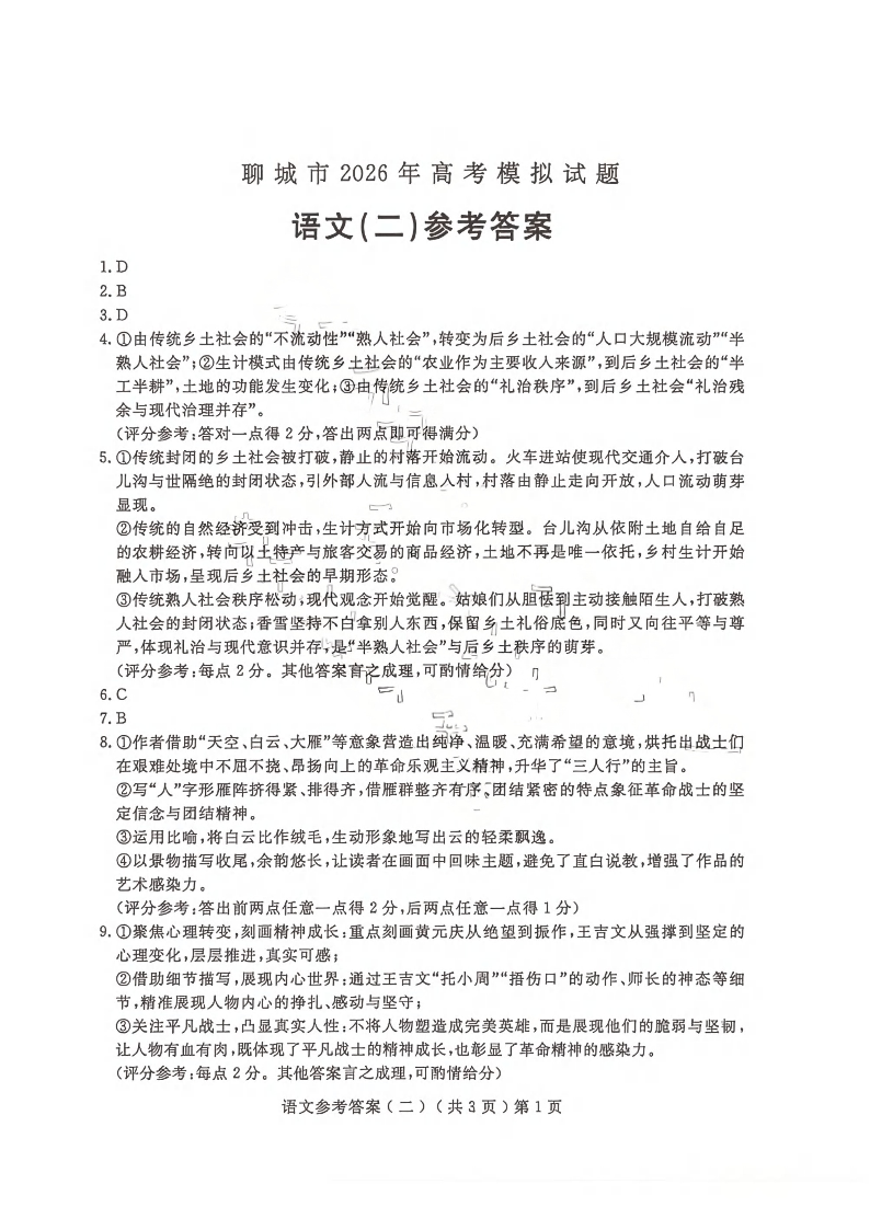高三语文答案--聊城市2026年普通高中学业水平等级考试模拟卷