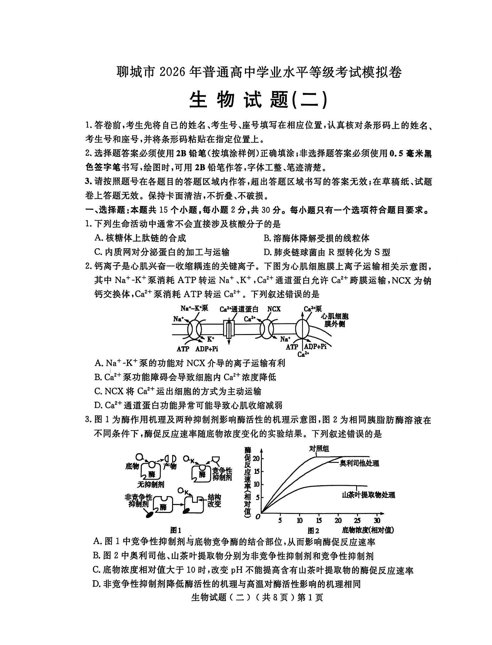 高三生物--聊城市2026年普通高中学业水平等级考试模拟卷