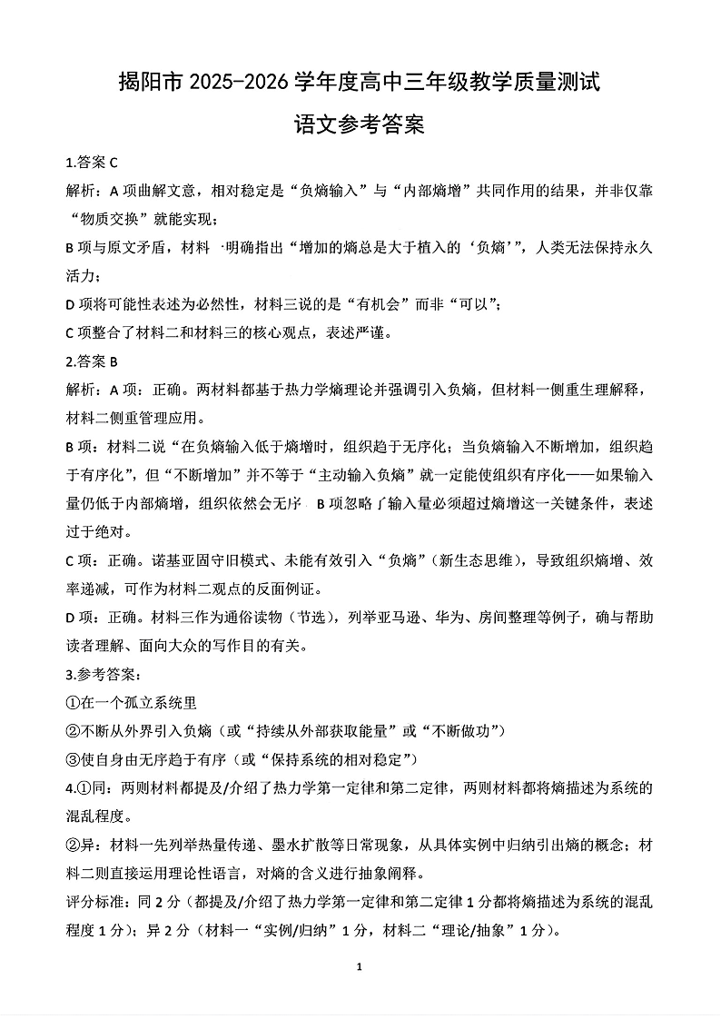 高三语文答案--广东省省揭阳市2026届高三4月教学质量测试(揭阳二模)