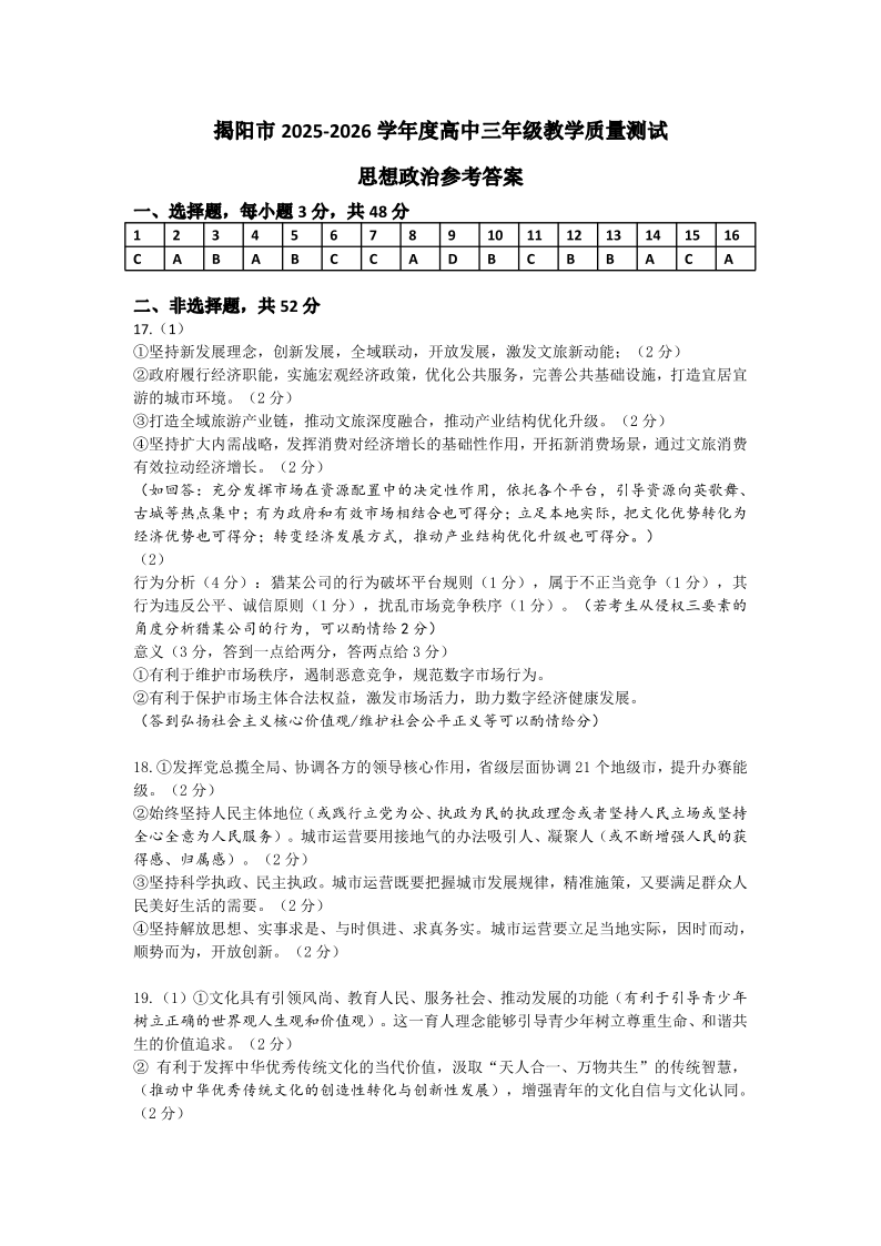 高三政治答案--广东省省揭阳市2026届高三4月教学质量测试(揭阳二模)