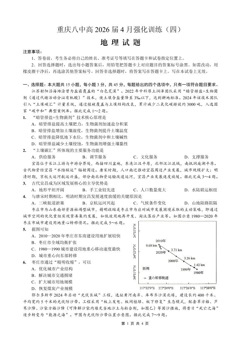 高三地理--重庆市第八中高2026届高三4月强化训练(四)
