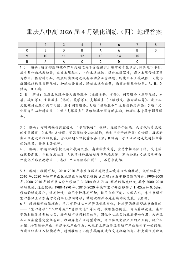 高三地理答案--重庆市第八中高2026届高三4月强化训练(四)