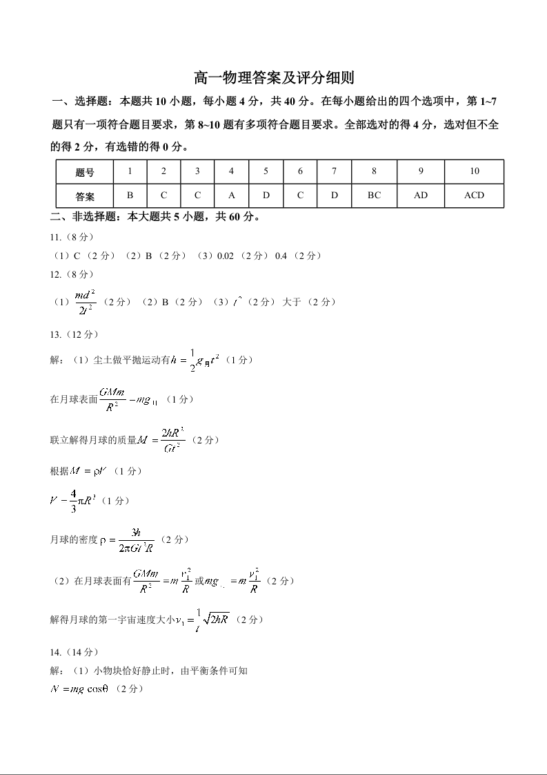 高一物理答案--湖北省鄂北六校2025-2026学年高一下学期期中联考