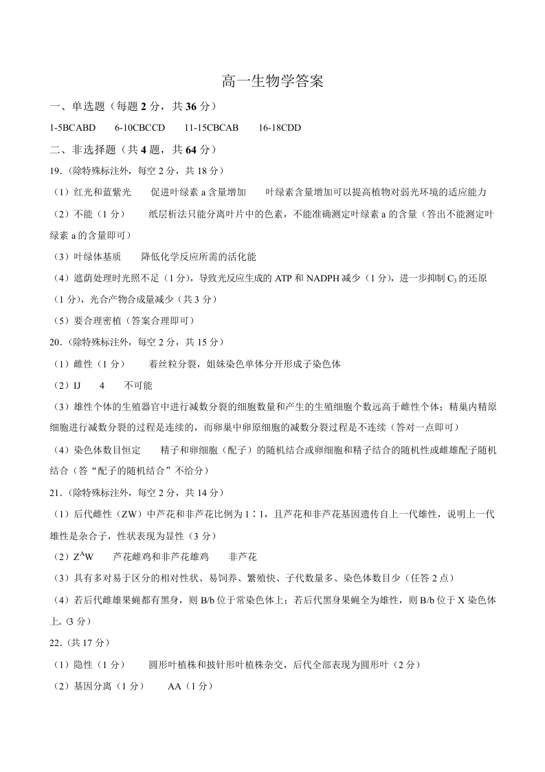 高一生物答案--湖北省鄂北六校2025-2026学年高一下学期期中联考