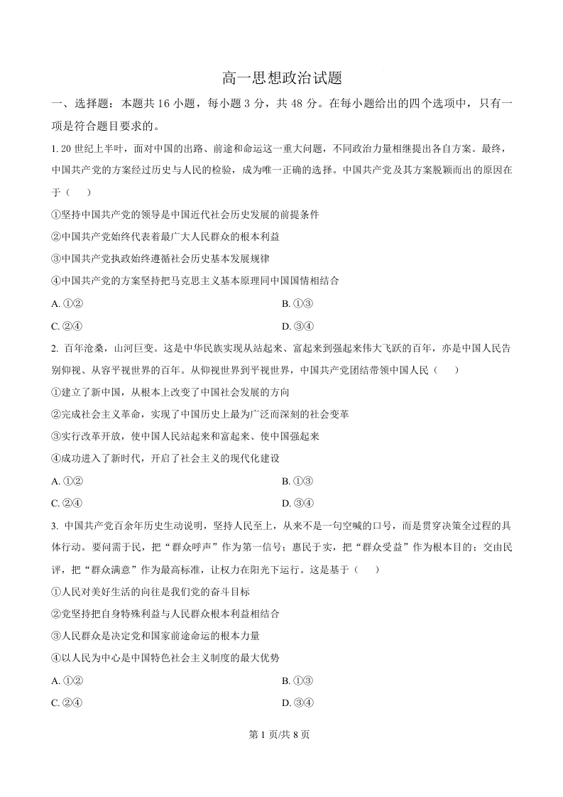 高一思想政治(原卷版)--湖北省鄂北六校2025-2026学年高一下学期期中联考
