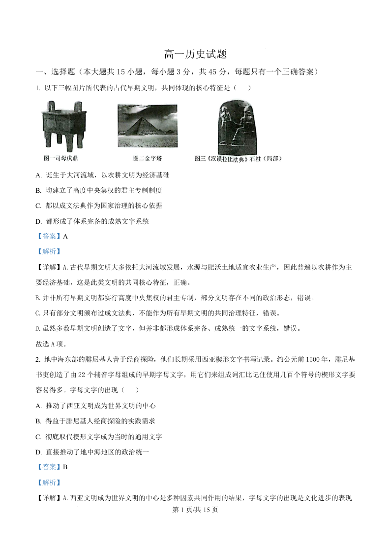 高一历史(解析版)--湖北省鄂北六校2025-2026学年高一下学期期中联考