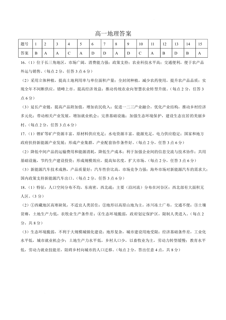 高一地理答案--湖北省鄂北六校2025-2026学年高一下学期期中联考