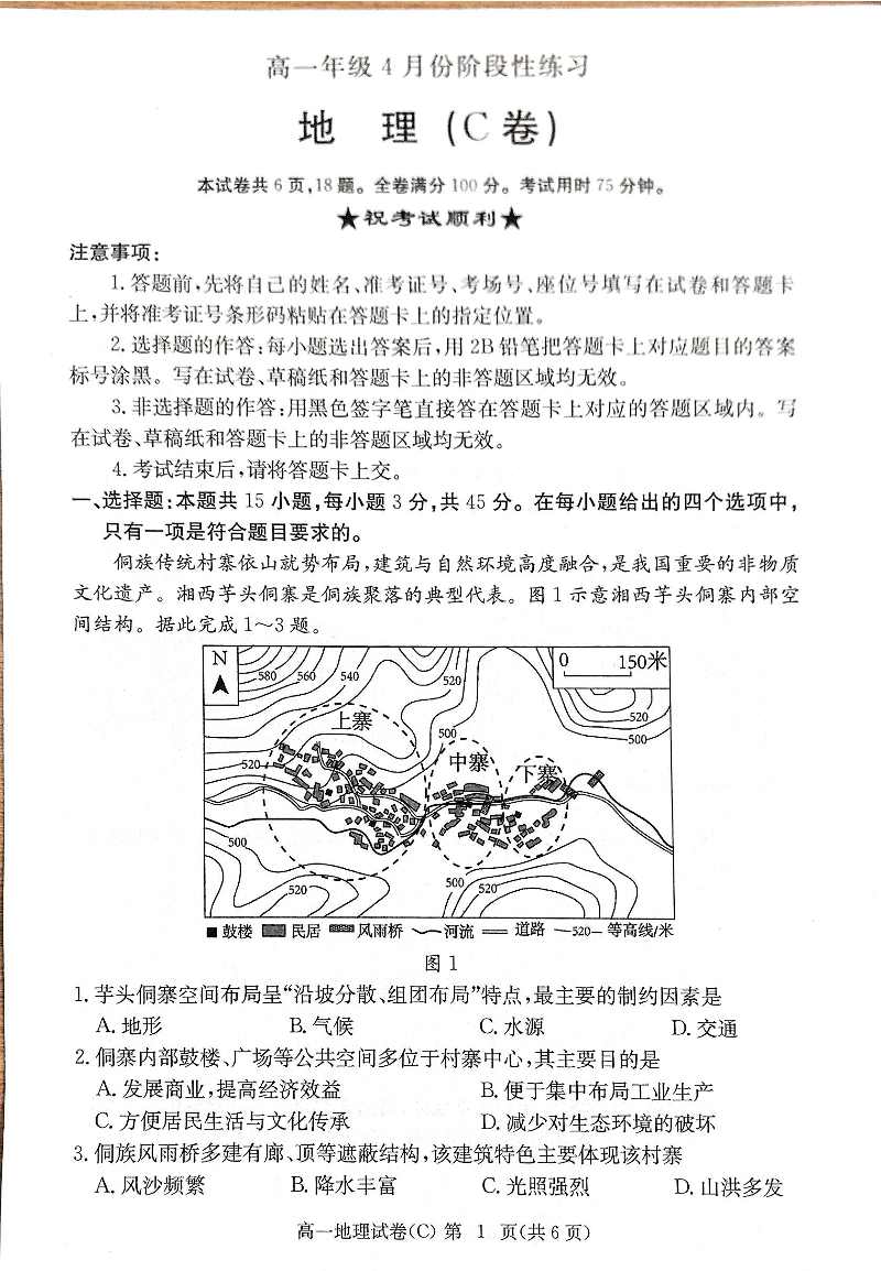 高一地理C卷--湖北省黄冈市2025-2026学年高一下学期期中考试