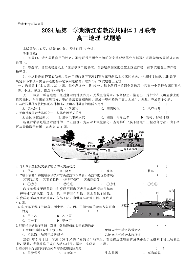 2023学年第一学期浙江省七校教研共同体调研测试 地理