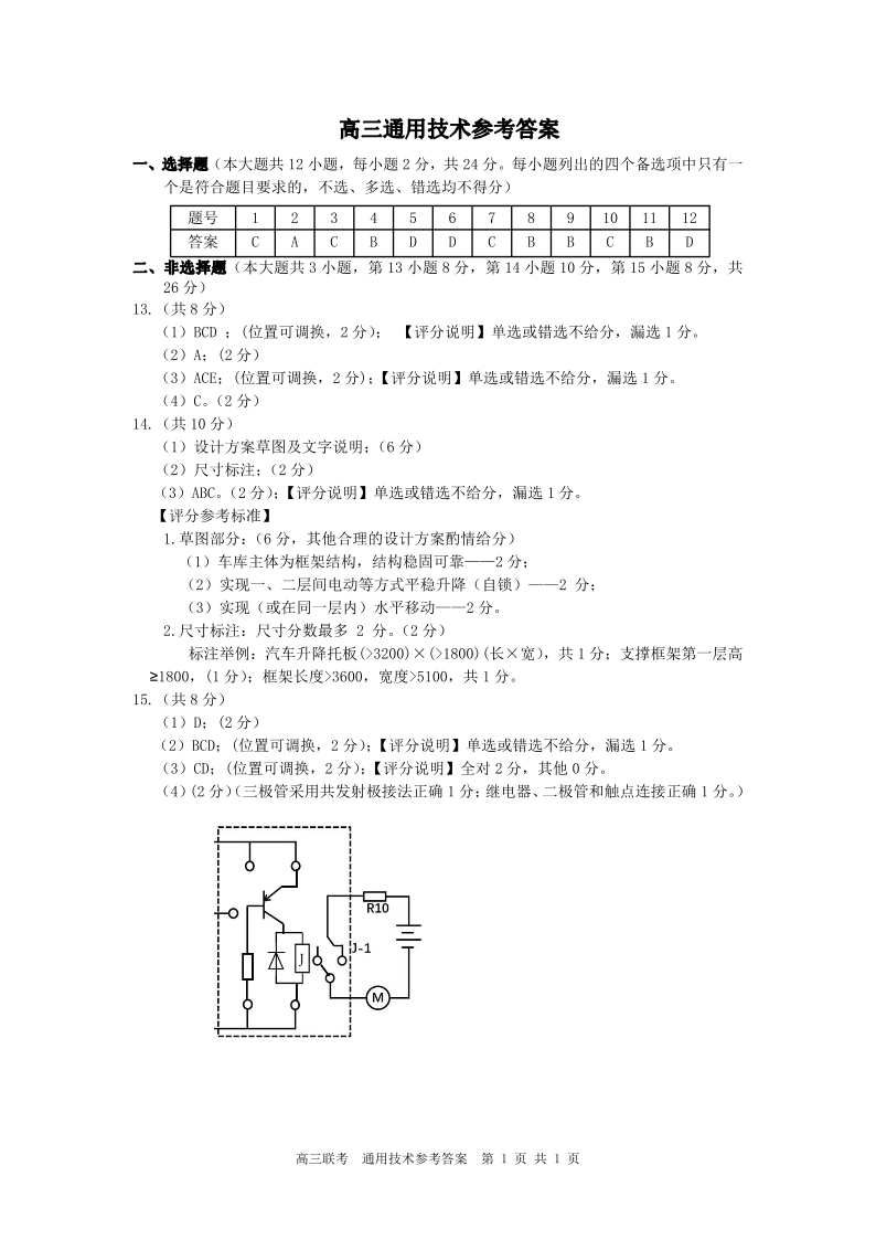 浙江省北斗星盟2023-2024学年高三上学期12月适应性考试 通用技术答案