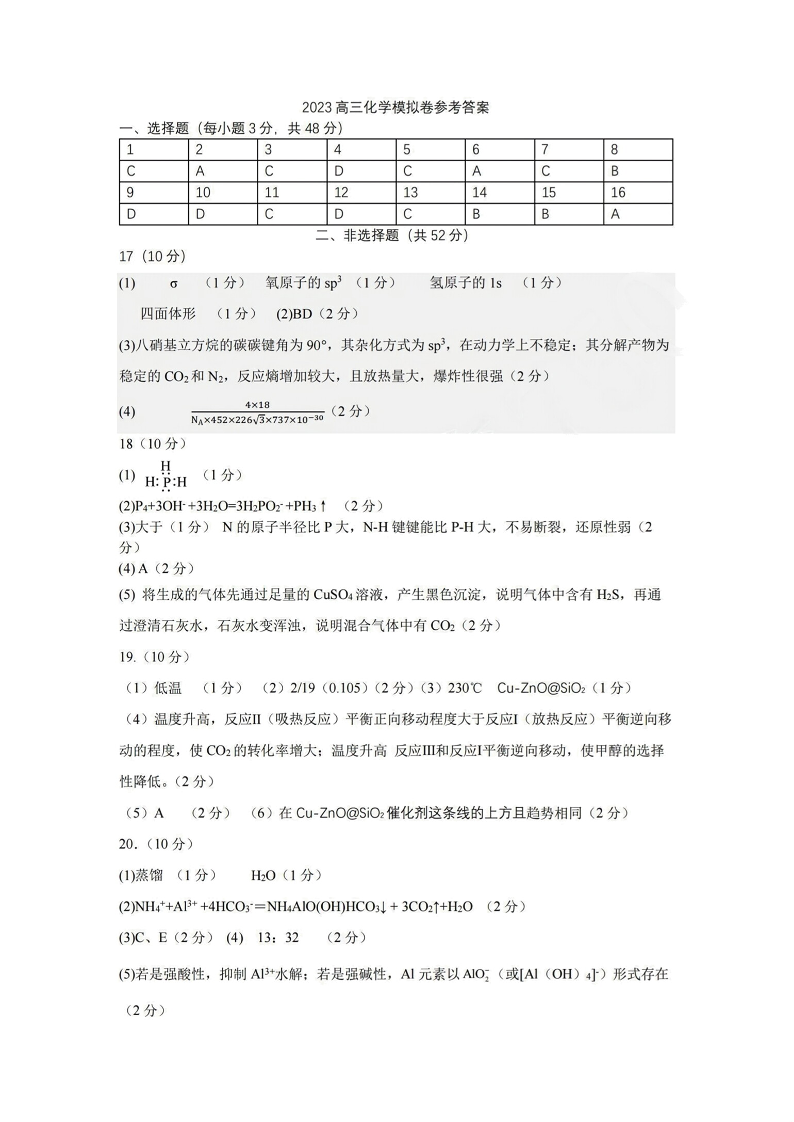 浙江省三校2023-2024学年高三上学期联考选考模拟 化学答案