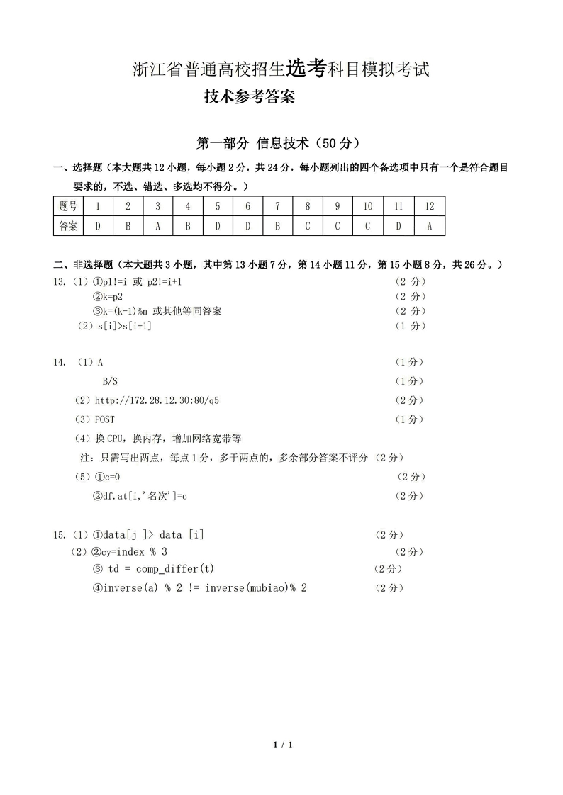 浙江省三校2023-2024学年高三上学期联考选考模拟 技术答案