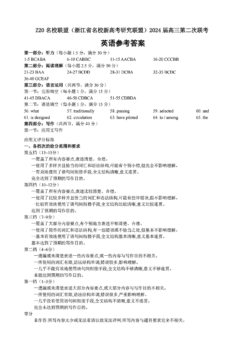 浙江省Z20名校联盟2023-2024学年高三上学期12月月考 英语答案