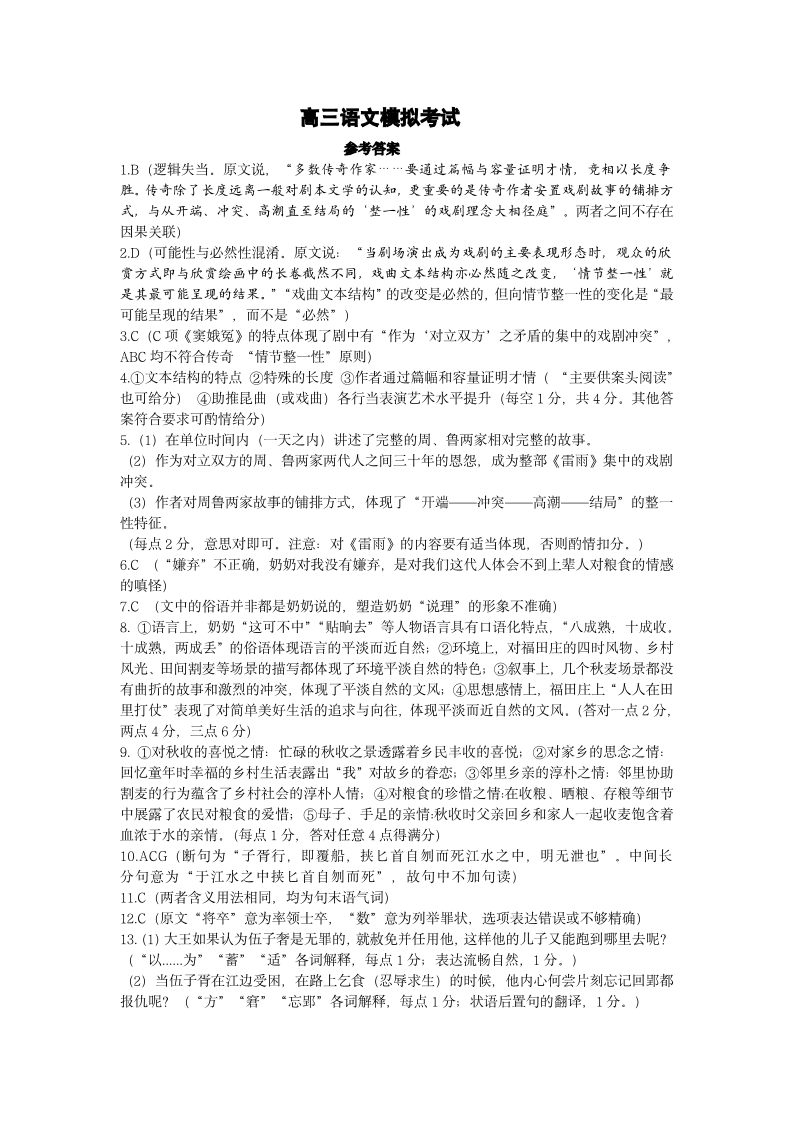 浙江省金华十校2023-2024学年高三上学期11月模拟考试 语文答案