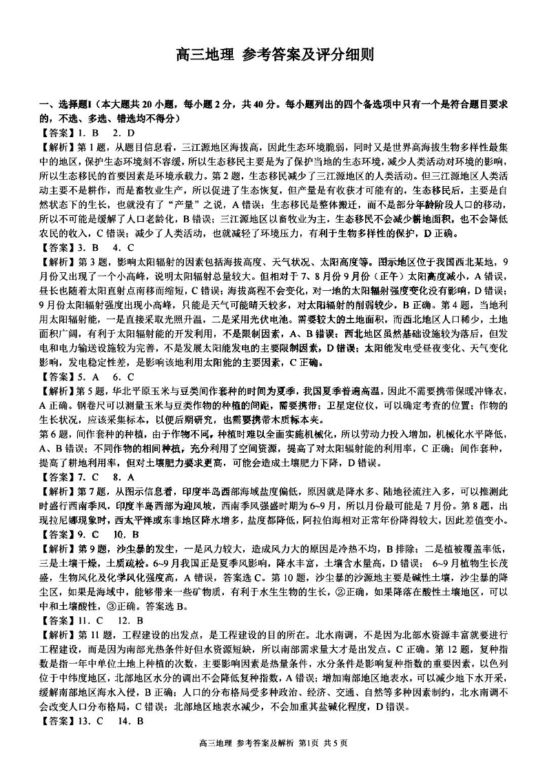 浙江省七彩阳光新高考研究联盟2023-2024学年高三上学期返校联考 地理答案