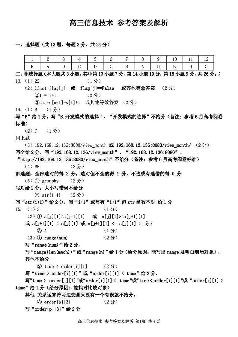 浙江省七彩阳光新高考研究联盟2023-2024学年高三上学期返校联考 技术答案