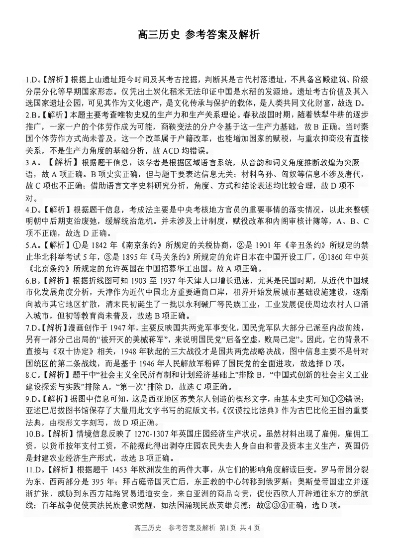 浙江省七彩阳光新高考研究联盟2023-2024学年高三上学期返校联考 历史答案