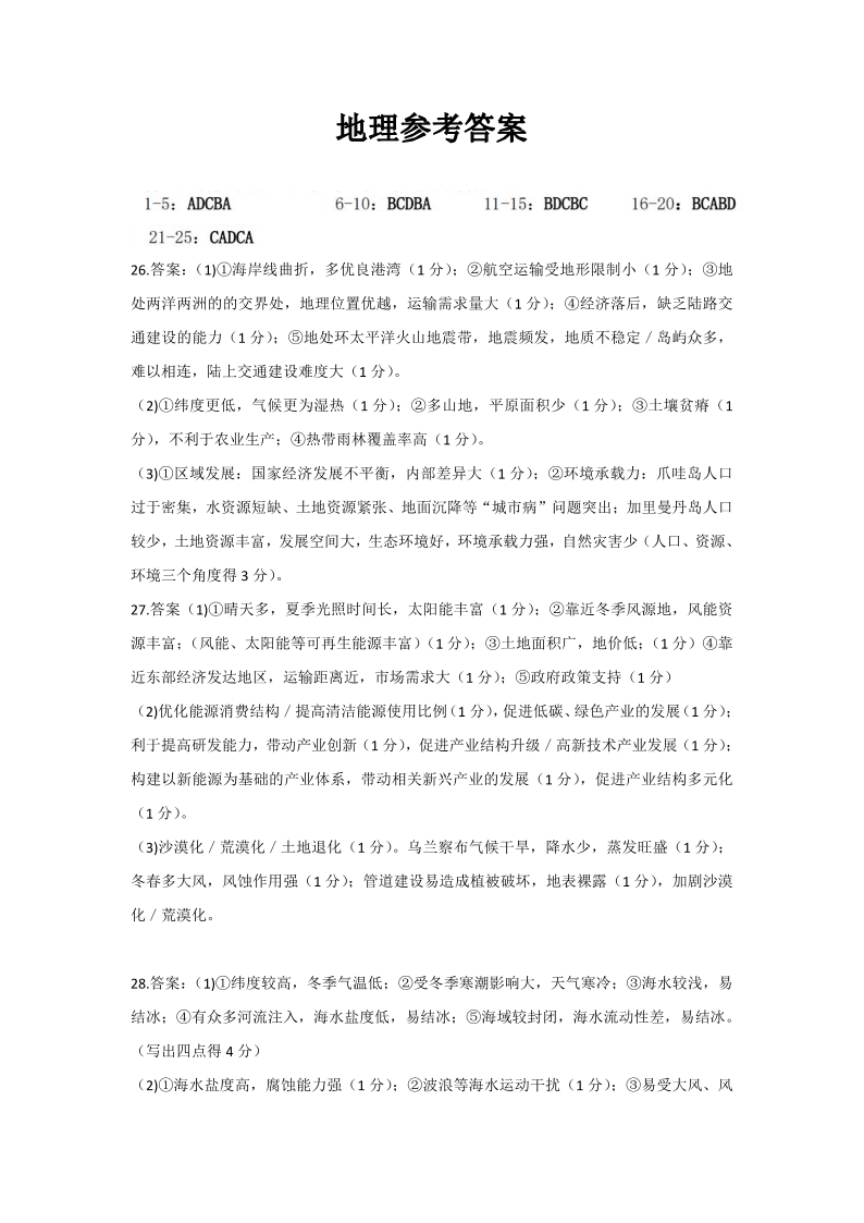 浙江省A9协作体2023-2024学年高三暑假返校联考 地理答案