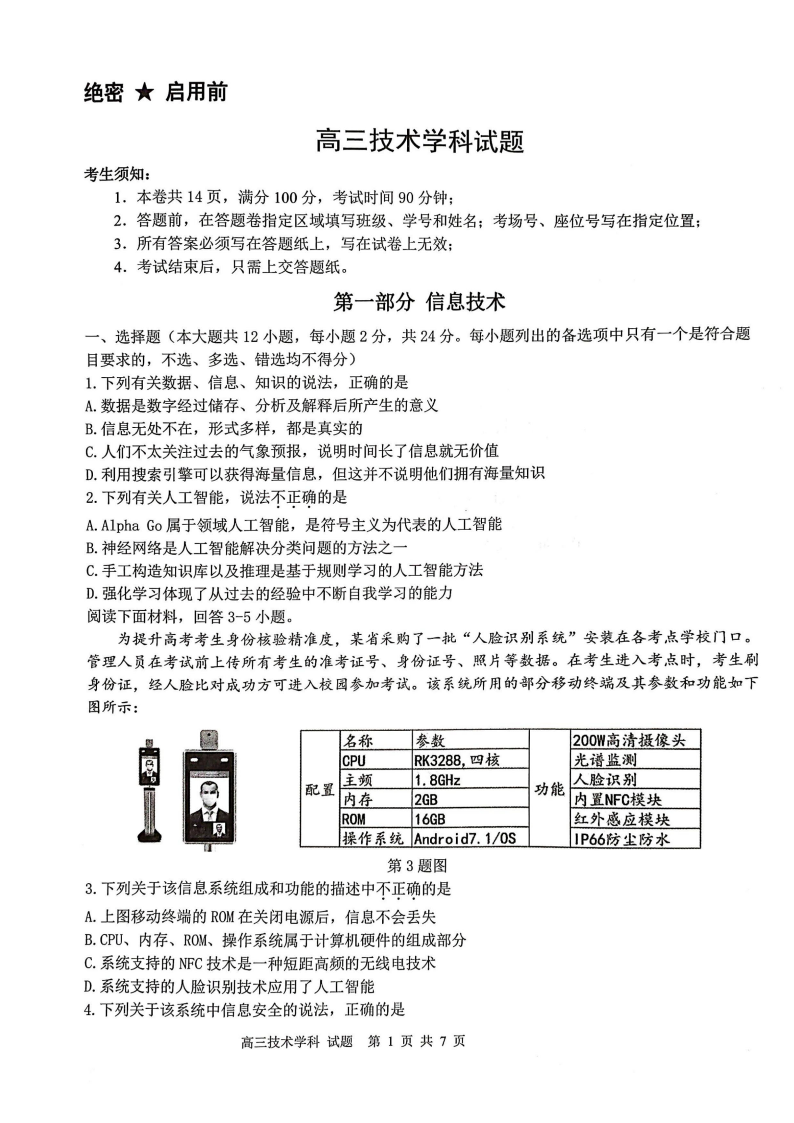 浙江省北斗星盟2023届高三下学期5月联考 技术试卷及答案