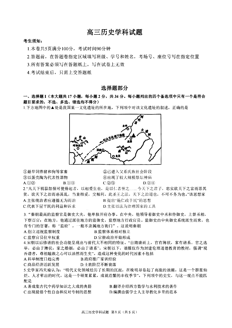 浙江省北斗星盟2023届高三下学期5月联考 历史试卷及答案