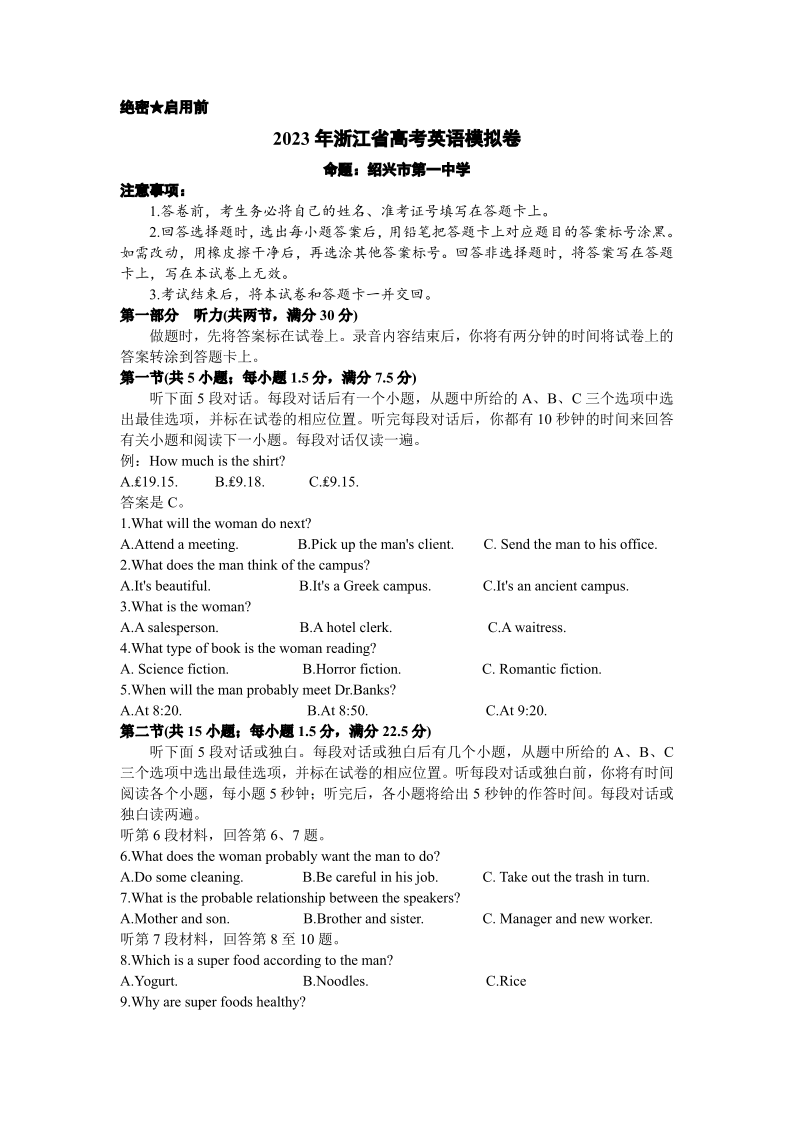 2023年浙江省高考四校联盟高三模拟卷 英语