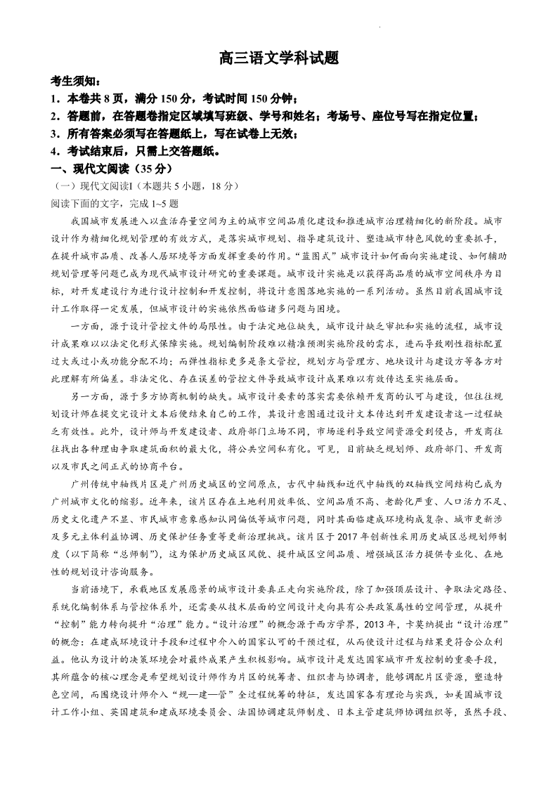 浙江省北斗星盟2024届高三下学期5月适应性联考+语文