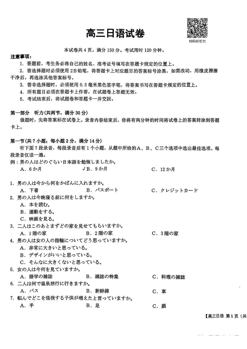 2024届江苏广东福建高三金太阳10月百万大联考 日语